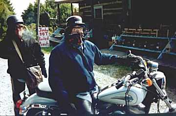 | We started by riding to Lake Lure to pickup Sandy's boots and it was so cold they decided to get chaps as well. |