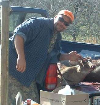 Well, I got a call this morning around 9am and the first words I heard were "I got one". Mex had got his first deer!! I asked him how big and he said it was just a spike but he had only been sitting there about 15 minutes when it walked right in front of him. At lunch time, they came up to the house with 2 deer. Spencer had got one too!
