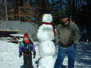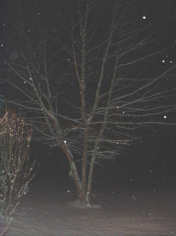 We Built A Snowman!First snow of the year! The first is the Cornstalk Plantation after the snow. Our little nephew Brandon came up and we built a snowman! First one of those I've built in years! The tree is a shot I took at night during the snowfall. I had to lighten it a little, but it might be an OK pic. Then finally we have our snowman. Brandon say's he's a conductor because of the black hat, but it's really a biker kinda hat. So we couldn't decide what to name him. Casey Jones is his conductor ID, but I guess he has an evil alter-ego as Butch the biker!