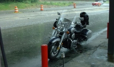 Here's a soggy Jen and the Nomad on the Foothills Parkway, heading into Gatlinburg.