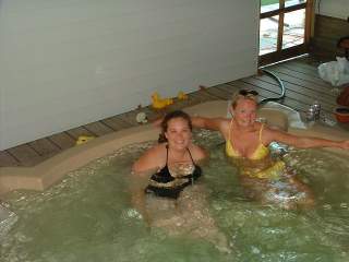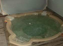 This tub was acquired through a buddy of mine. The deal was, I could purchase it at a steal, but I had to remove it from a deck, patch the deck, and move the tub. Doesn't sound so bad, but it was in one of these glass sunroom things! Not one to back down from a challenge, I bit! The moving and purchasing is a story in itself, so maybe one day I'll spend the time to explain. Let's just start here, after two years, Jen threatened to sell it if I didn't get it up and running! It's sunk down in our deck, screened in with a wall framed four feet high. And a roof, of course! I don't know which was worse, getting it out of the sellers house, or getting it into mine! The tub itself is ten feet across, with seats set at different heights. I call it a hot tub, because it's more like a real hot tub than a spa. It has two speeds, low and high, and an air blower that blows bubbles through holes in the floor. No high tech fancy jets, it's not even on a thermostat, just a timer. But it's ours, and many a day it's been the attitude adjustment we need! Anyway, here's some pics.