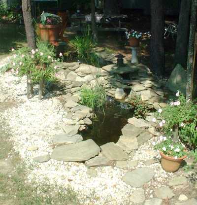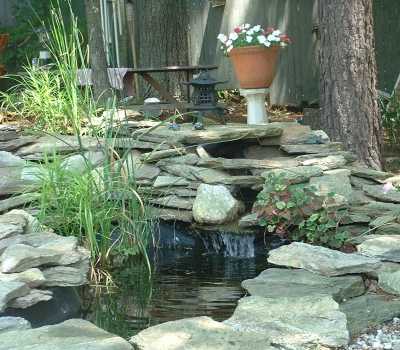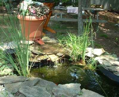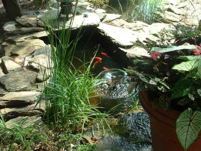 Jen implied that we needed some new pics of the goldfish pond, since all the plants are jamming now that summer is deep upon us. So here we go....